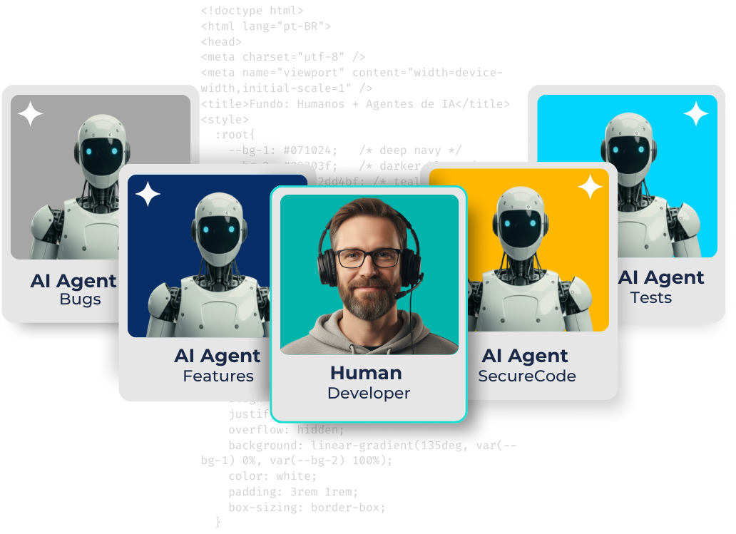 + 15 anos desenvolvendo software globalmente. Agora, nossos engenheiros já atuam lado a lado com Agentes de IA autônomos e especializados.